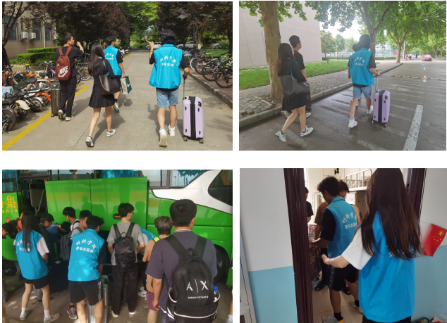 学院领导老师到校内毕业生乘车点送站,与乘车离校的毕业生们一一道别。低年级在校生自发组织的志愿者同学也到现场为毕业生送行,志愿者们感慨地说道“你们接我来,我们送你走”,一句句充满温情的嘱托,一声声离别不舍的再见,一幕幕难以忘怀的画面,都是母校对学子的情谊与祝福。