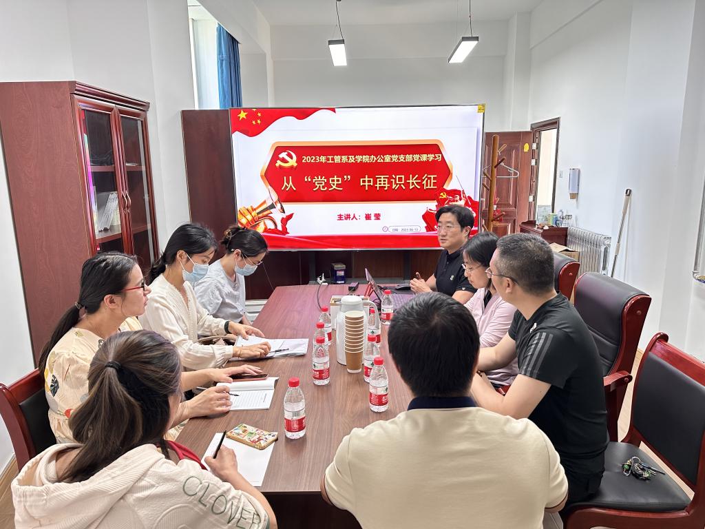 6月13日,雁塔校区东方石油楼1101,副院长崔莹以“从‘党史’中再识长征”为题,为工管系、办公室教工党支部全体党员讲授了专题党课。