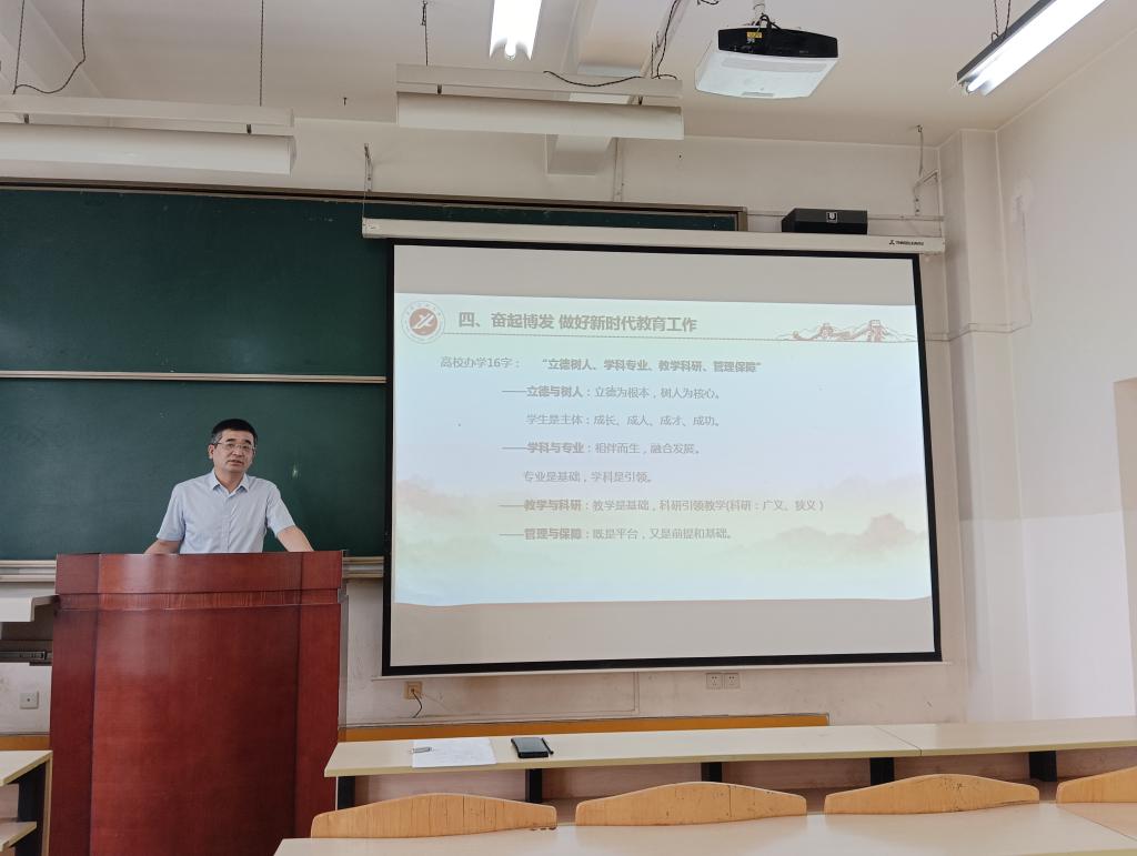 6月14日,鄠邑校区第一会议室,党委书记陈涛以“新时代 新青年”为题,为全体学生党员讲授专题党课。