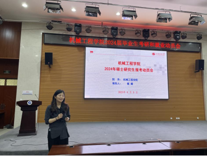 为进一步推进2024届毕业生就业工作,帮助学生清晰地判断就业趋势、建立良好的就业观念,系统合理地规划考研复习及应试过程,6月9日中午,机械工程学院在鄠邑校区崇文楼118报告厅召开2024届毕业生就业和考研动员会,学院党委副书记刘冰、副院长崔璐分别作就业和考研形势分析及动员,2020级全体学生参会。动员会由2020级辅导员马舒宇主持。