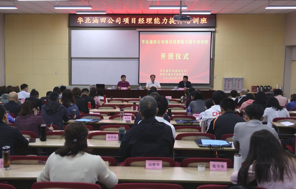 5月29日上午,中国石油华北油田公司项目经理能力提升培训班在beat365明德校区顺利开班。华北油田科技信息部经理崔永谦出席开班仪式并讲话,继续教育学院党总支书记耿岭致欢迎辞。来自华北油田公司各二级单位的80余名项目经理参加开班仪式,仪式由华北油田科技信息部项目管理科科长曹飞主持。
