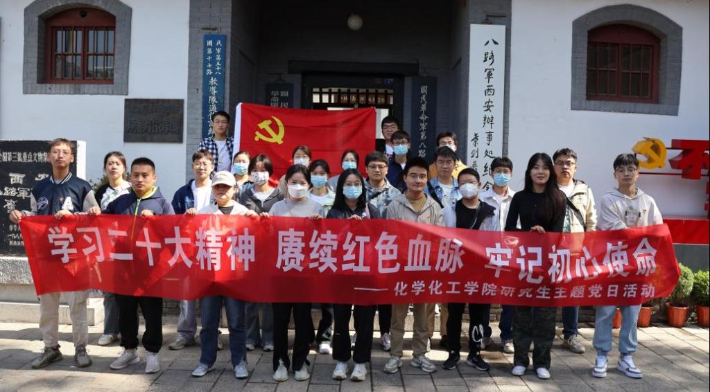 为深入开展学习贯彻习近平新时代中国特色社会主义思想主题教育,宣传党的二十大精神,深化党史学习教育成果,激发学生党员爱党爱国情怀,5月24日上午,化学化工学院2021级研究生党支部组织党员,在八路军西安办事处纪念馆,开展“学习二十大精神,赓续红色血脉,牢记初心使命”主题党日活动。