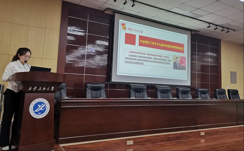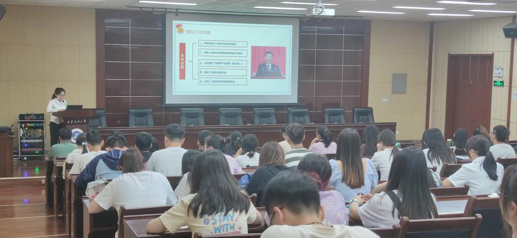 宣讲会上,尹兴雨同志从认识党的二十大的重要时间节点,党的二十大报告是如何诞生?深刻领会党的二十大主题、报告主要内容、党章修正案、青年担当等几个方面展开宣讲,向与会的同志们深入解读共同学习了关于过去5年的工作和新时代10年的伟大变革,关于马克思主义中国化时代化,关于中国式现代化,关于全面建设社会主义现代化国家的目标任务和关于党的全面领导,全面从严治党等几个部分的内容。