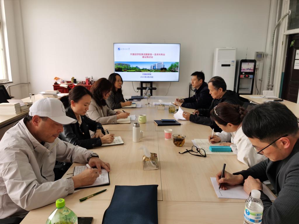 为进一步加强英语国家级一流本科专业建设,梳理专业建设中存在的问题,明确下一步建设目标,外国语学院于4月28日下午16:30,在华油能源楼727召开英语国家级一流本科专业建设推进会。学院党委书记田虹霞、副院长刘辉、副院长陈武出席会议,英语专业学科带头人袁森、专业负责人董梅、英语系主任钟泽波、副主任邓林及党支部副书记苗旸参加了会议。会议由副院长刘辉主持。