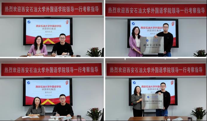 座谈会后,田虹霞和刘辉分别代表学院与译国译民集团西安公司签订就业实习基地、研究生联合培养基地协议并授牌。