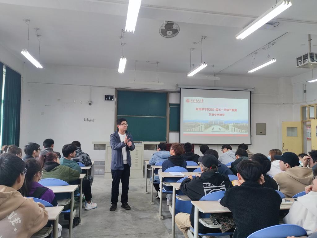 五一假期将至,为强化假期安全教育,提高学生自我防护意识,确保学生度过一个安全、快乐、充实的假期,4月24日-26日,新能源学院各年级扎实开展五一劳动节学生安全教育主题大会,会议由各年级辅导员老师主持,学院全体学生参会。