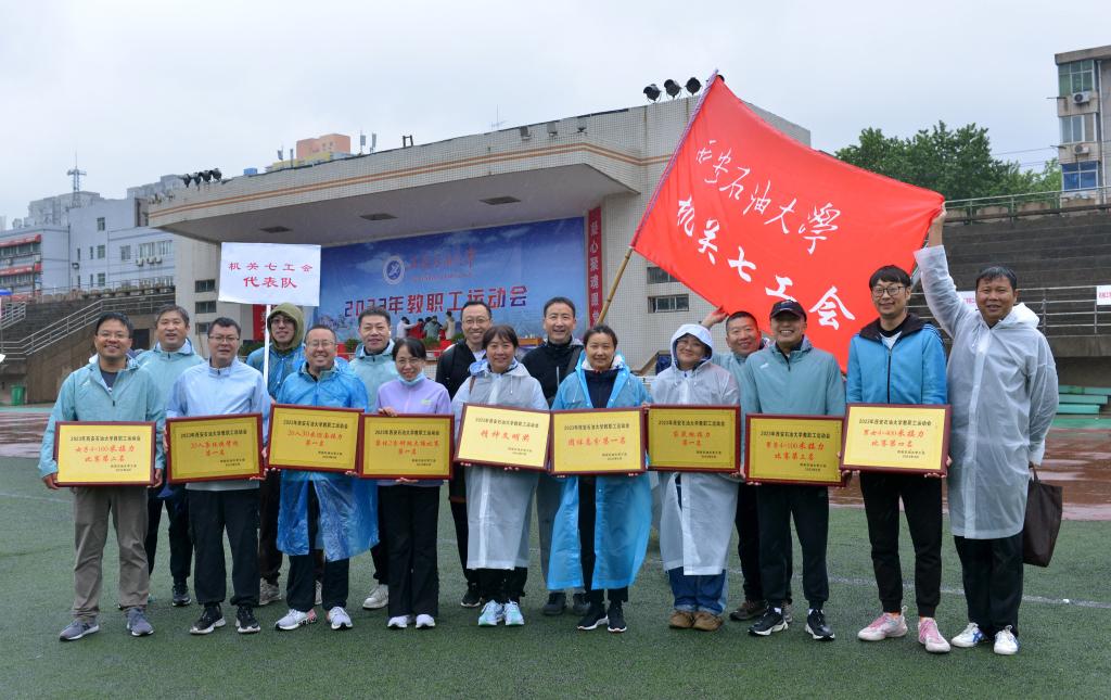 4月21日,beat3652023年教职工运动会在雁塔校区田径场举行。由后勤处职工组成的机关七工会代表队迎风冒雨,团结协作、并肩战斗、奋勇拼搏。这只运动员平均年龄达48岁多的代表队,一共参加了7项集体、23项个人比赛项目,参加人员为39人次。为期一天的赛事活动中,大家在赛场上热情洋溢,挥洒汗水,留下了一个个拼搏进取的矫健身影、一幅幅精彩绝伦的竞技画面。