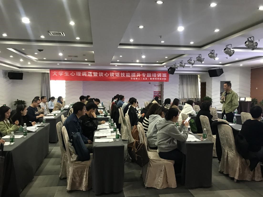 2023年4月22日至23日,学生工作部(学生心理成长指导中心)组织学工干部、心理健康教育专职教师17人参加由华培育人(北京)教育科学技术院举办的“大学生心理调试暨谈心谈话技能提升专题培训班”。