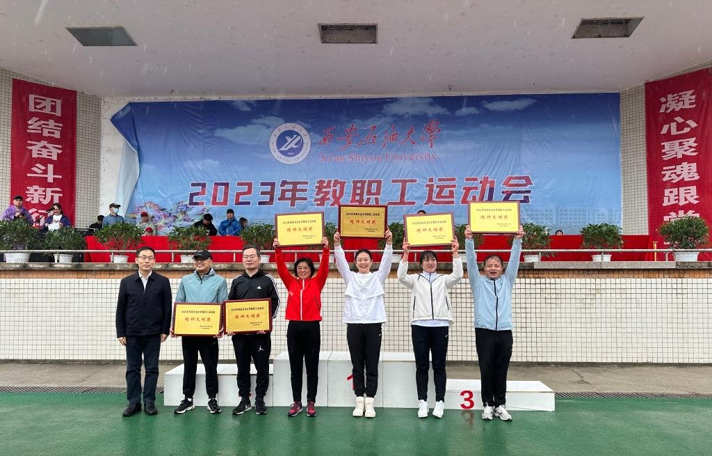 学院领导班子高度重视本次时隔两年的教职工运动会,安排细致、动员到位,积极组织由72位教职工组成的人文学院工会代表队报名参加各类竞赛项目,运动员占比六成以上,斗风沙、战寒雨,凝聚力量、团结奋进,展现新时代铁人精神。运动健儿努力拼搏,获得女子4×100米接力比赛第一名、男子4×100米接力比赛第二名、男女混合4×400米接力比赛第二名的好成绩,获得代表队团体总分第三名、精神文明单位等多项集体荣誉,刷新100米短跑、立定跳远、足球射门、篮球自投等多项竞赛院级记录。除了运动员的竞技硬实力外,优质周到的团队服务软实力也提供了重要支持,物资准备充分、预案全面周到、人员精干高效,充分展示人文学院团结友爱、欣欣向荣的精神风貌。