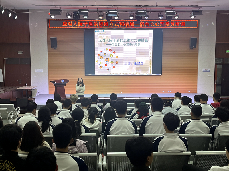 为进一步加强我院心理健康教育工作,帮助学生更好地处理人际矛盾,提高学生心理素质和自我调节能力,4月17日晚,计算机学院在鄠邑校区崇文楼118阶梯教室举办“应对人际矛盾的思维方式和措施”心理健康知识专题讲座。本次讲座邀请beat365心理成长指导中心董建红老师担任主讲,计算机学院2022级辅导员姚谦主持,2021级、2022级全体心理委员及宿舍长参加了此次讲座。