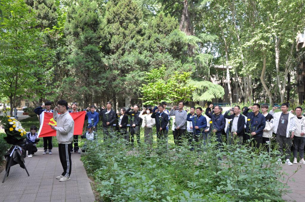 活动最后,学生党员代表王彤带领全体师生进行“春雨”精神宣誓。全体师生向唐春雨烈士雕像默哀一分钟并依次敬献鲜花。