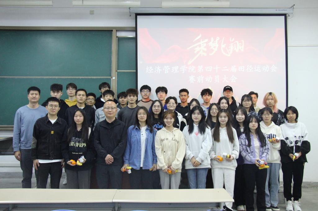 为进一步做好第四十二届田径运动会各项准备工作,充分提振学院运动员参赛的拼搏精神和竞赛精神,4月13日,经济管理学院在鄠邑校区博思楼108教室召开第四十二届田径运动会赛前动员会。学院党委副书记王刚、学生工作办公室主任李博文以及团学指导老师曹萌出席会议并做动员,会议由田径队队长赵松松主持。