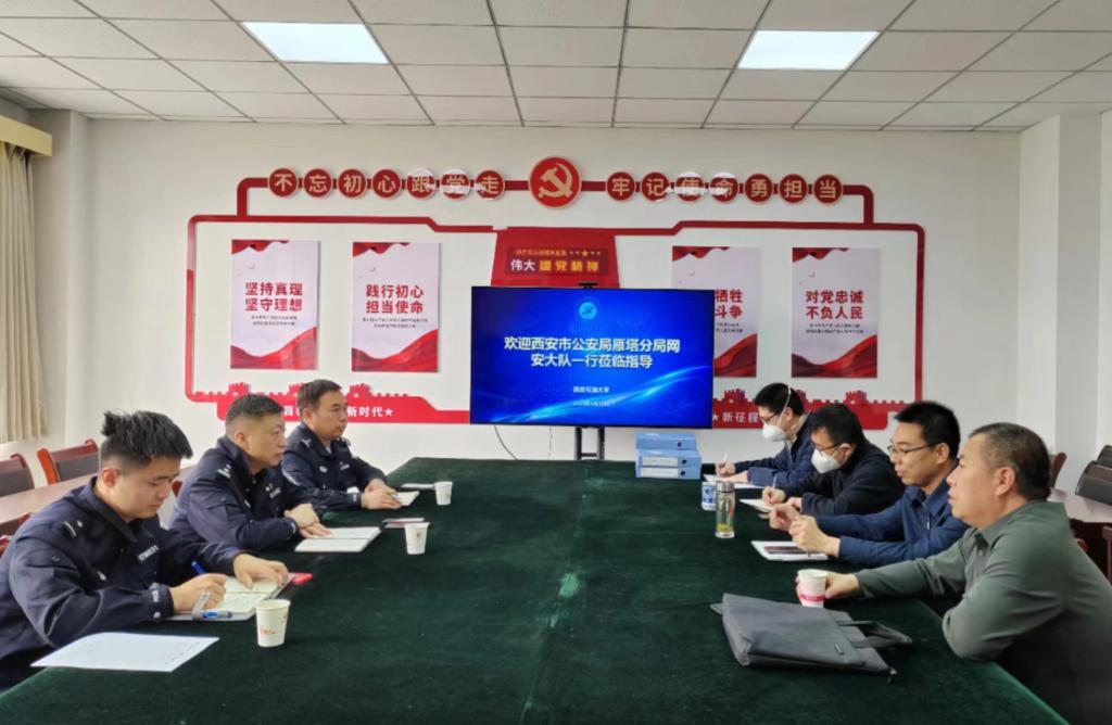 2023年4月12日上午,西安市公安局雁塔分局网安大队负责人赵万鹏一行到beat365开展调研交流,开展"进、建、商"(进警营、建实言、商办理)、“联防解”(联社会各界、访千家万户、解急难愁盼)相关活动,保卫处和信息化建设与管理处主要负责人及相关人员参加了座谈。