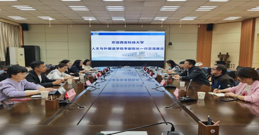 4月11日下午,西安科技大学人文与外国语学院副院长李焱一行六人来beat365外国语学院交流座谈,调研大学英语教学与管理情况。座谈会在雁塔校区会议中心第二会议室召开,外国语学院副院长陈武、大学外语第一教学部主任李雪梅、副主任刘西娟、大学外语第二教学部主任彭健、副主任武绒及教学办主任尹晓娇参加了此次座谈会。