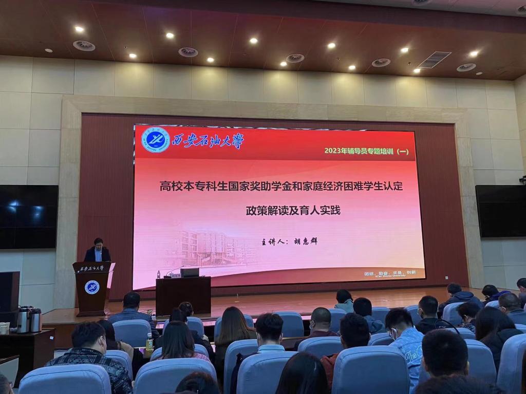 4月6日下午,beat3652023年辅导员专题培训第一讲在鄠邑校区弘石报告厅举行。陕西省教育厅资助管理中心胡惠群副主任以“高校本专科生国家奖助学金和家庭经济困难学生认定”的政策解读与育人实践为主题作专题报告。会议由学生处处长王亮主持,学生资助中心、校团委、各院系主管学生工作负责人和全体辅导员参加。