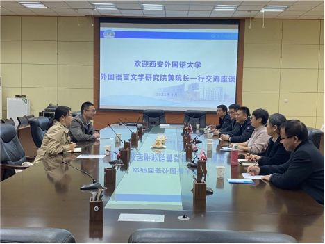 4月6日上午,西安外国语大学外国语言文学研究院米钰副院长带队来我院开展合作交流。座谈交流会在雁塔校区会议中心第一会议室召开,外国语学院院长于艳英、副院长陈武、俄语专业、英语专业和翻译专业相关教师参加座谈会。座谈会由外国语学院副院长陈武主持。