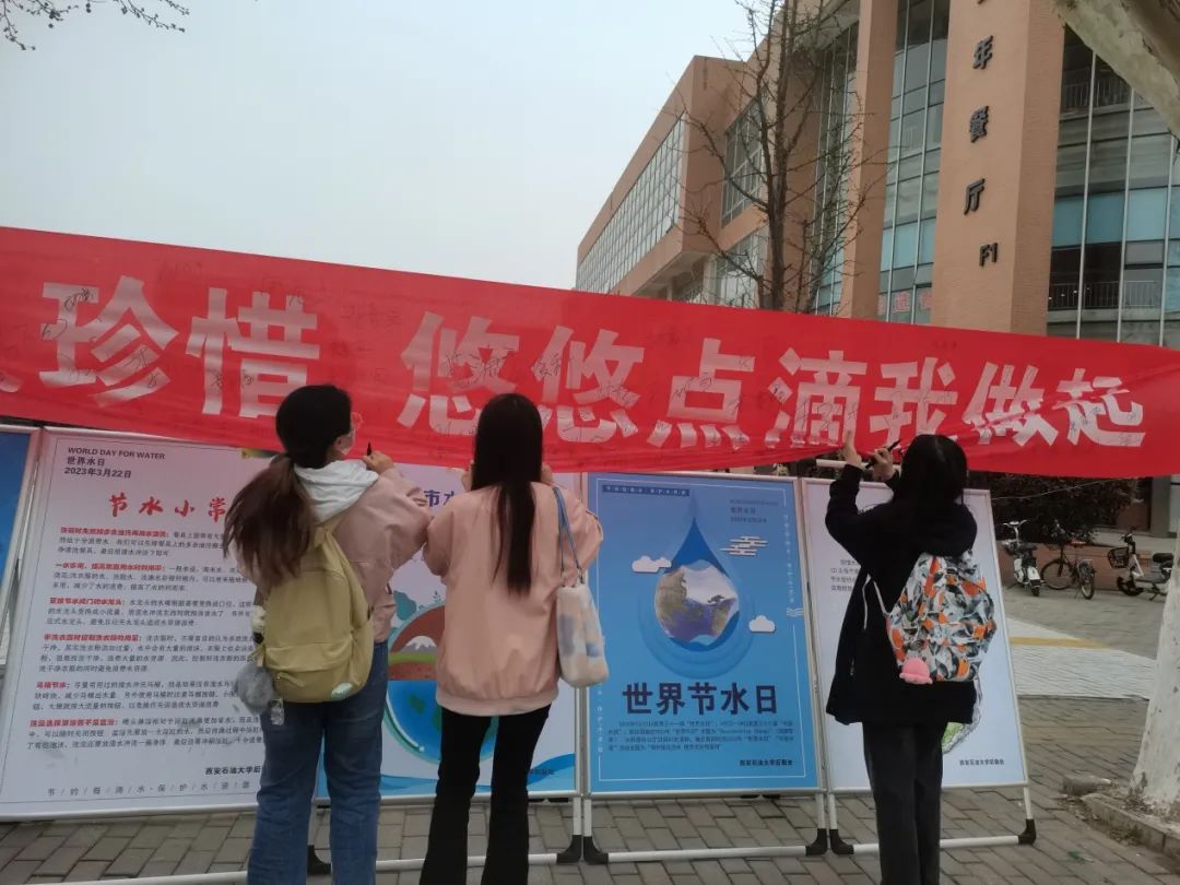 为深入落实节水优先方针,推进实施国家节水行动,beat365积极响应陕西省“节水中国、你我同行”主题宣传活动,3月22日至28日,beat365在雁塔校区、鄠邑校区开展了节水宣传周活动。活动周期间采取悬挂节水宣传条幅、摆放节水宣传展板、发放节能环保手册、师生签名等活动,并在中午人流密集的学生餐厅门口向学生宣讲我国面临的严峻水情,以及节水知识。