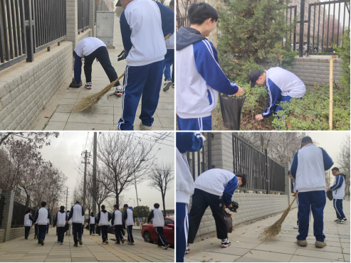 过程装备与控制工程专业同学承担起清洁学校南门区域与围墙周围绿化带卫生的志愿服务工作。