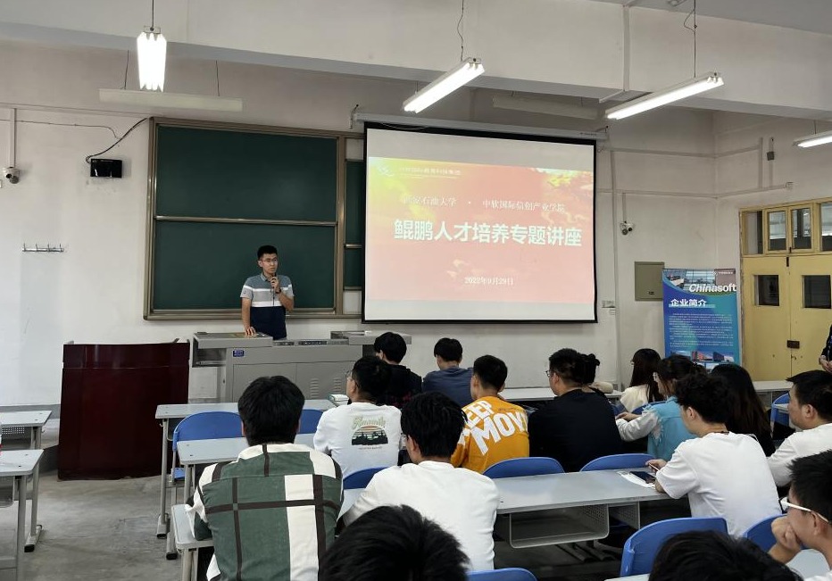 讲座伊始,电子工程学院2020级辅导员李昱昊向学生们提出了殷切期望,希望同学们作为人工智能第一批学生,要清晰认识自身的使命感和责任感,要把握来之不易的学习契机,了解鲲鹏产业,了解专业知识,提高专业水平和专业素质,从而在未来工作中适应时代发展的需要。
