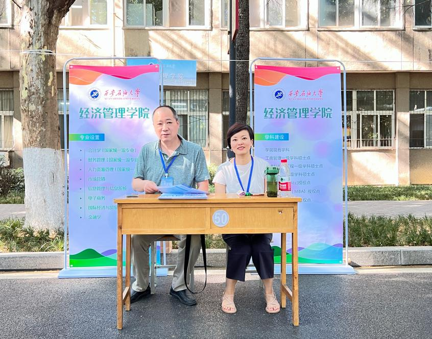同时,为配合学校招生办公室做好“校园开放日”宣传活动,学院教学办公室主任袁静和副教授程骏在雁塔校区负责经济管理学院咨询点现场咨询,与其他院(系)一起为来校参观、咨询的考生及家长提供细致、耐心的咨询服务。