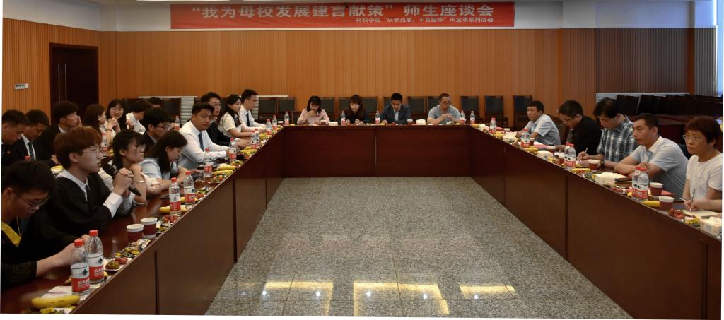 5月19日上午,材料科学与工程学院“我为母校发展建言献策”师生座谈会在鄠邑校区图书馆第一会议室举行。学院党委副书记张云姿、副院长朱世东以及各系、中心、教学办教师代表,全体辅导员老师参加座谈会,并与毕业生代表进行了深入交流,倾听同学们为学校和学院的发展建设提出的宝贵意见和建议,与即将离校的毕业生们一起共话学校发展。座谈会由学生工作办公室主任马武军主持。
