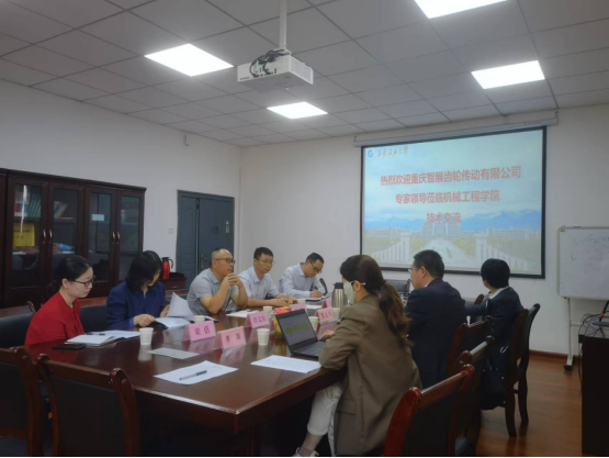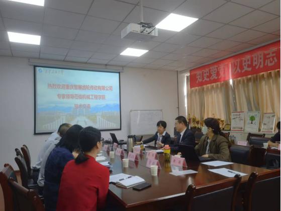 窦益华院长首先对何荣校友一行来校表示热烈欢迎,并详细说明了学院组织架构和科研业绩,重点举例近两年与企业战略合作成果。何荣校友代表智展齿轮介绍了公司的发展历程,列举了所取得的多项国内领先技术成果,以及公司的发展方向。学院副院长崔璐重点介绍学院在机械传动、故障诊断、疲劳损伤、传质传热等方向的研究进展,以及与西安交通大学、西北工业大学等院校合作开发成果。智展公司江师露主任则展示了公司的主要产品及应用案例,并且提出部分待解决的技术难题。陈兵教授当场对公司提出的部分问题进行了初步分析,并且与几位年轻教师一起展开讨论,与来访技术专家就高速齿轮箱传动和常见故障进行了深入交流。