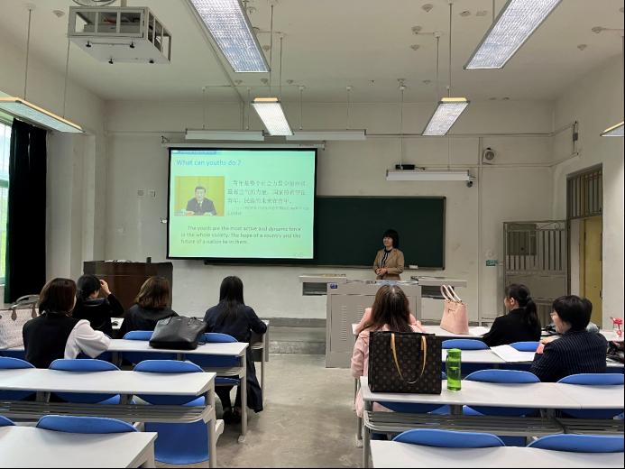 随后,李红老师对全新版大学进阶英语第四册第三单元JobHunting的课堂思政教学进行展示。李红老师的课堂设计共有五个环节,在每一个环节中都插入了与话题紧密相关的思政元素,有条理地引导学生体会习近平总书记对青年的殷切希望,明确青年的力量和时代使命,鼓励学生练就过硬的本领,迎接工作应聘的考验,实现贡献国家的人生价值。