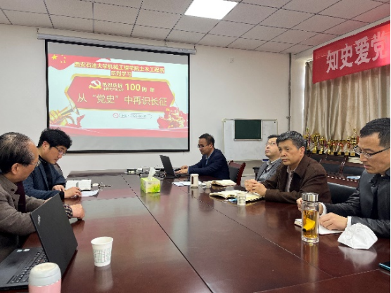 4月1日下午,机械工程学院土木工程系教工党支部在雁塔校区4号实验楼425会议室召开“从“党史”中再识长征”专题学习会。副校长杨战社作为联系支部的校领导,深入支部指导学习。机械工程学院党委书记蔡建文同志、土木工程系党支部全体教工党员参加会议。党支部书记崔莹同志主持会议。