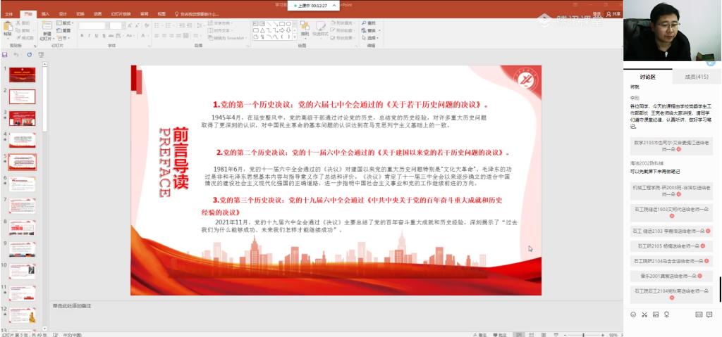 3月23日晚,石油工程学院第三十期入党积极分子培训班第三讲在线上课堂顺利举办。校党委学生工作部部长王亮老师受邀担任主讲,来自各院系的400余名入党积极分子共同参加了学习。
