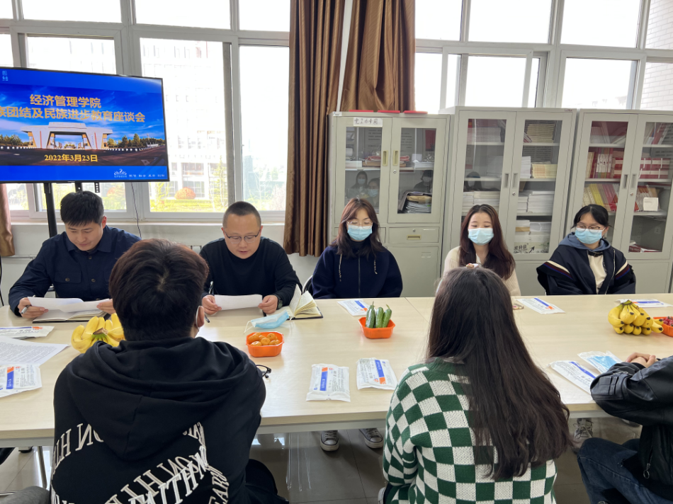 各民族团结友爱是中华民族的光荣传统,是社会主义民族关系的生动体现,是中华民族繁荣发展的重要保证。为进一步统一思想,凝聚共识,不断铸牢中华民族共同体意识,引导少数民族同学坚定理想信念,奋发成才,3月23日,经济管理学院在鄠邑校区崇文楼307室召开民族团结及民族进步教育座谈会。学院党委副书记王刚出席会议,学生工作办公室主任李博文、辅导员古兰木巴尔·苏巴提及学院全体新疆籍少数民族同学参加会议。