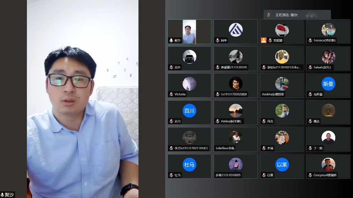 会上,颜庭星副院长用中英双语具体说明了本次疫情防控的难点和要求。耐心地向学生解释了本次封校的原因,以及学校和学院在疫情防控工作方面所做出的巨大努力。在明确疫情防控要求,强调核酸检测、个人防护、线上教学、消防安全、生病就医、签证办理等方面的要求的基础上,承诺学院会对国际学生的基本生活需求做好保障,尽全力为学生提供良好的生活、学习、活动环境,保证每一位学生的健康和生命安全。