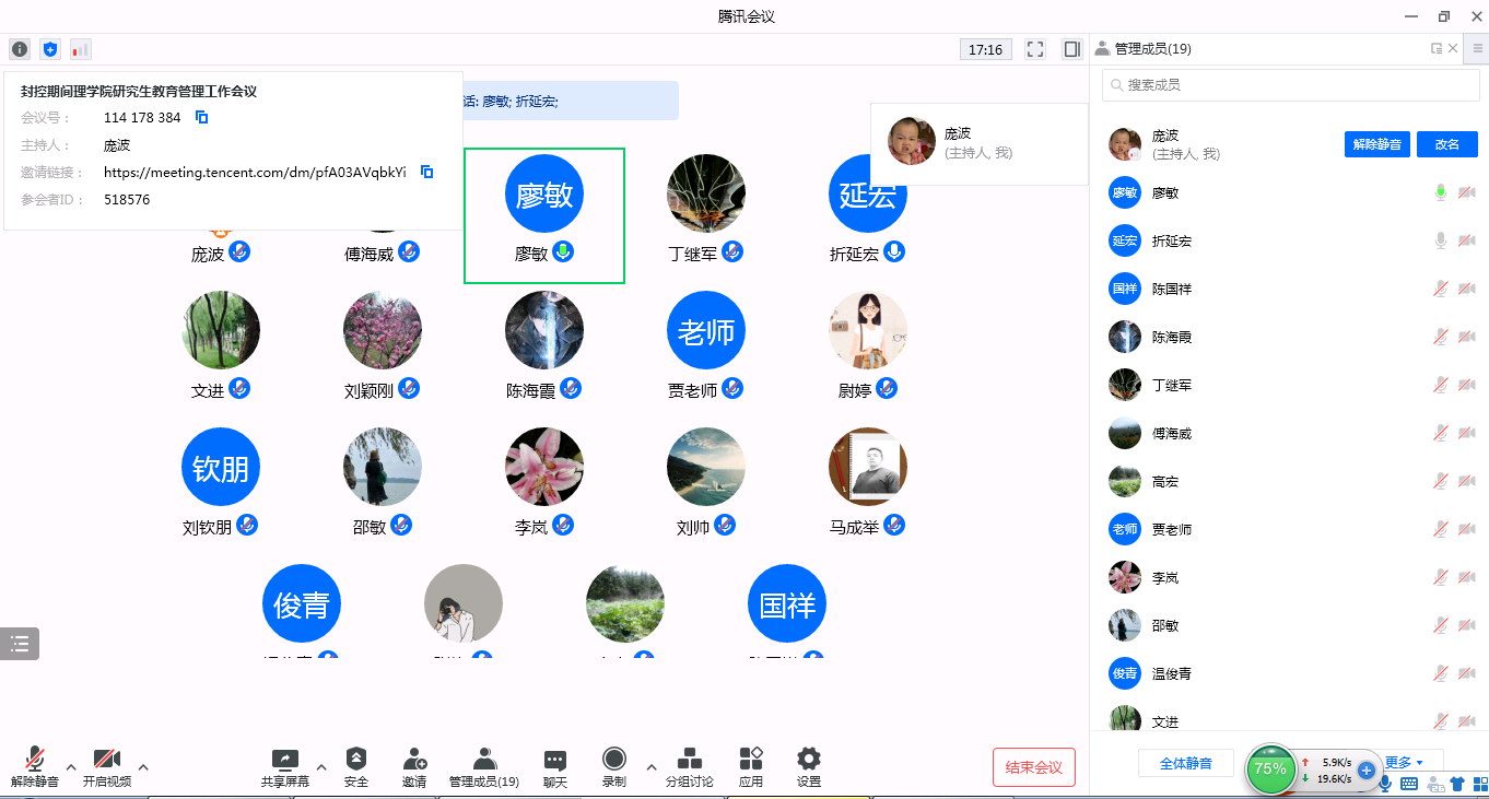近日,按照属地管理要求,beat365雁塔校区被调整为封控区。为进一步加强学生思想引领,全面落实封控期间研究生教育管理的各项任务、明确分工,理学院先后两次通过腾讯会议召开了研究生教育管理工作会议,全体领导班子、研究生导师、科研秘书和辅导员参加了会议,会议由理学院党委书记廖敏主持。