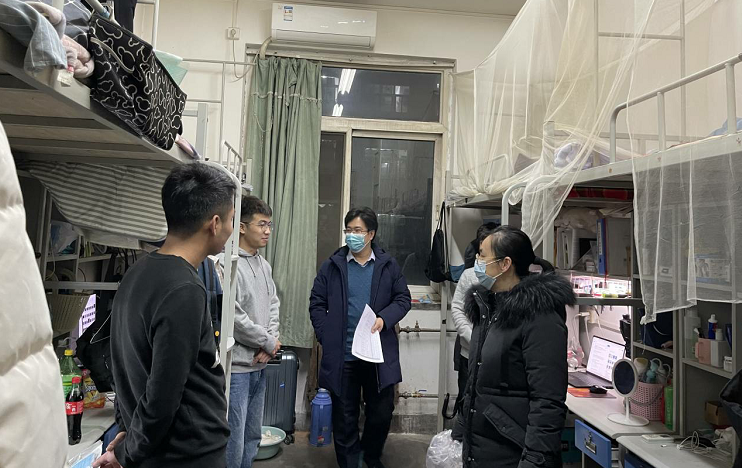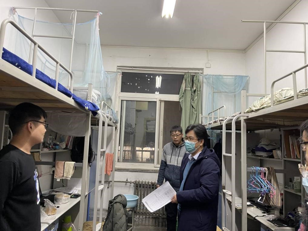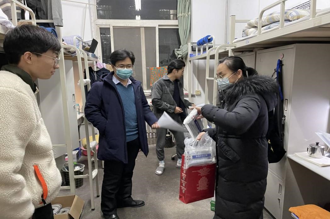 学院党委书记宋海洋带领学院党员先锋队老师们分三组到雁塔校区1、2、3号楼看望研究生并发放防疫口罩。