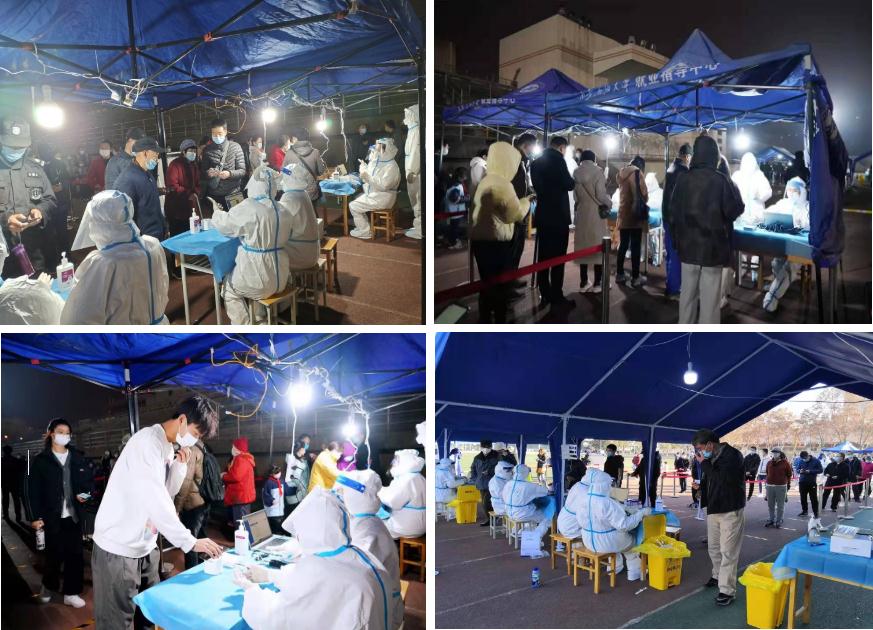 图:后勤社区人员参与核酸检测现场组织工作和信息采集