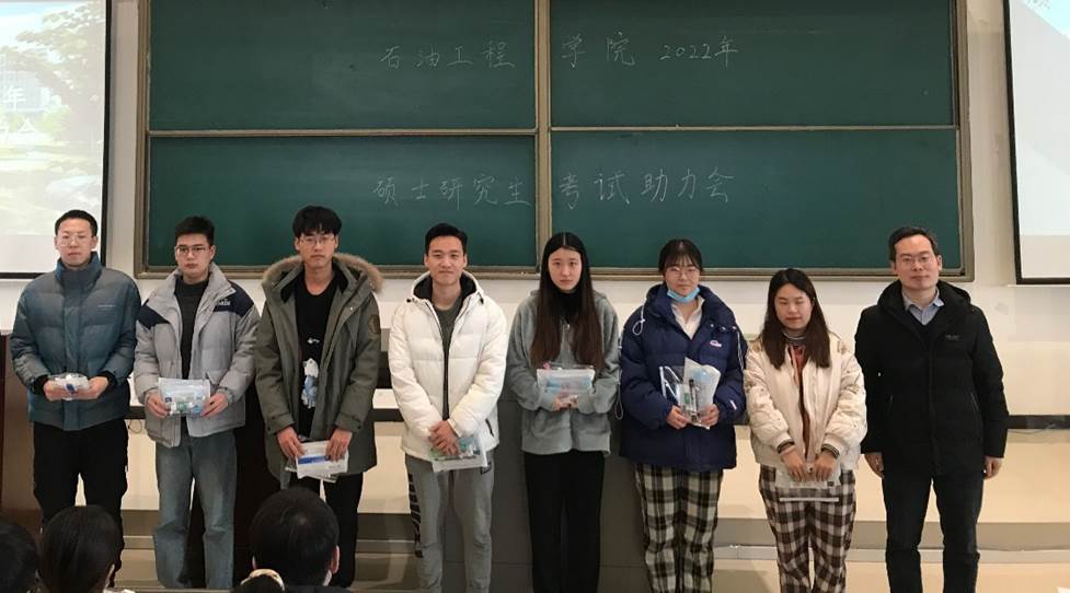 为进一步助力和服务我院考研学子,12月14日下午,石油工程学院在鄠邑校区开物楼115教室举办2022年硕士研究生考试助力大会,向考研学生发放爱心加油包并帮助学生排解备考冲刺的压力。石油工程学院党委书记马勇、党委副书记张建高、学工办主任朱战威和学院全体考研学生参加会议,会议由2018级辅导员聂康晨主持。