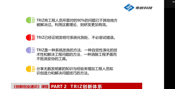 本次课程由粤嵌科技全国运营项目项目经理蔡佳祥主讲,他从“传统创新方法、TRIZ创新体系、TRIZ发明与创新规则、TRIZ原理与方法”四个方面,“产品设计及生产”两个维度对创新思维进行讲解,并在传统创新理论的基础上对TRIZ理论进行讲解和阐述。