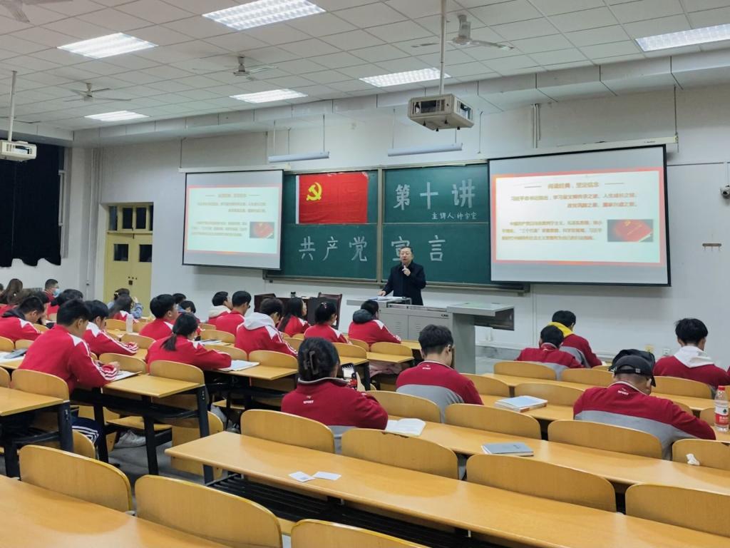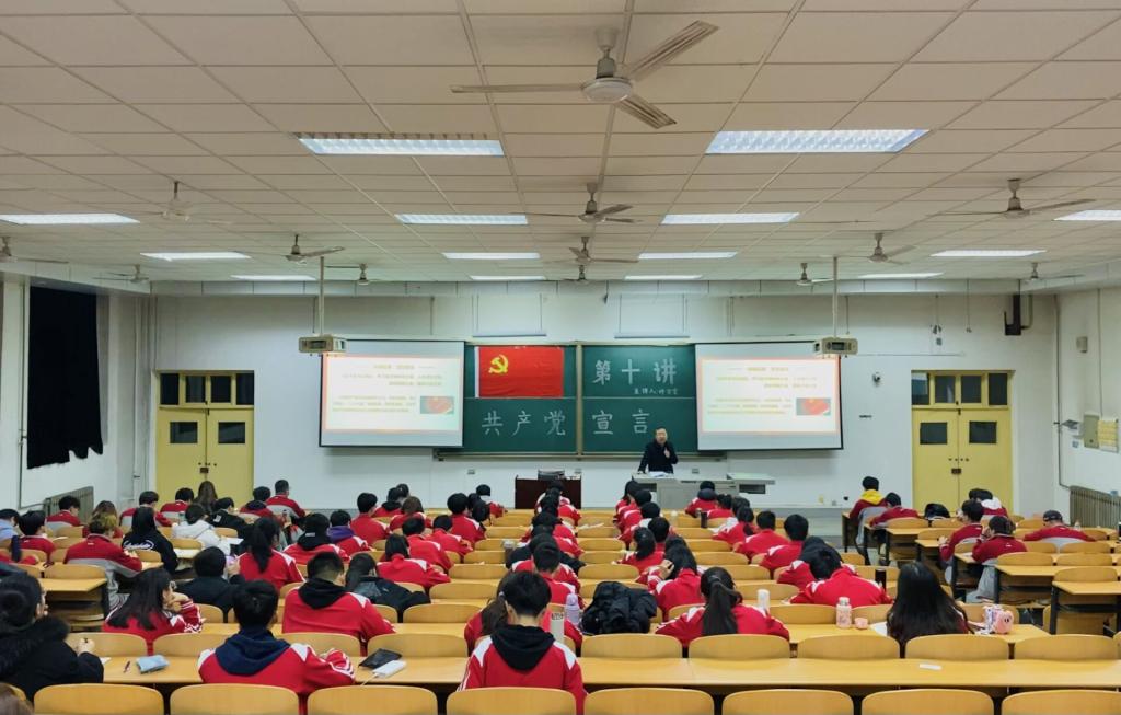 课堂上,种老师以“阅读经典,坚定信念”为题,带领同学们对《共产党宣言》的历史背景,主要内容和基本原理以及对中国的影响等内容进行了全面学习。种老师强调,共产党宣言》作为马克思和恩格斯为世界上第一个国际性的无产阶级政党——共产主义者同盟起草的纲领,是科学社会主义诞生的标志,是改变历史格局的重要著作。希望同学们学好用好《共产党宣言》等马克思主义经典著作,坚持学以致用、用以促学,熟读精思、学深悟透。