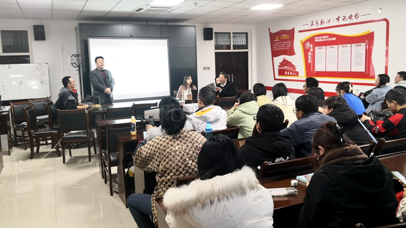 11月23日,在鄠邑校区博知楼112会议室,计算机学院教工第五党支部全体党员与2019级数字媒体与技术专业学生开展考研与就业主题班会。学院数字媒体系主任杨文阳副教授,2019级数字媒体与技术专业班主任李湘眷副教授,数字媒体与技术专业教师何志州、吉喆、赵越、崔惠萍出席座谈会,学院2019级全体数字媒体与技术专业同学参会,主题班会由2019级辅导员王天航主持。班会上,针对2019级数媒专业学生关注的考研和就业问题,教工支部党员做了耐心和细致的解答。