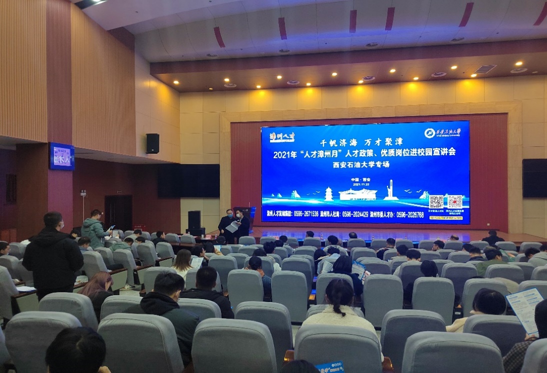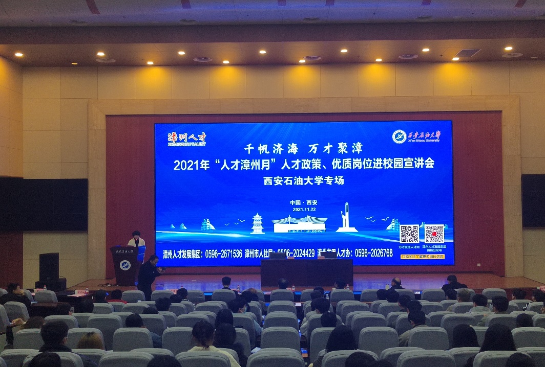 11月22日,漳州市科学技术局党组书记、局长林鹭一行6人代表漳州市人才办来beat365举行“人才漳州月”beat365官方网站专场宣讲会并签订校地合作协议。会议在鄠邑校区弘石报告厅举行。就业指导中心全体工作人员,全校各院系毕业生代表参加会议。