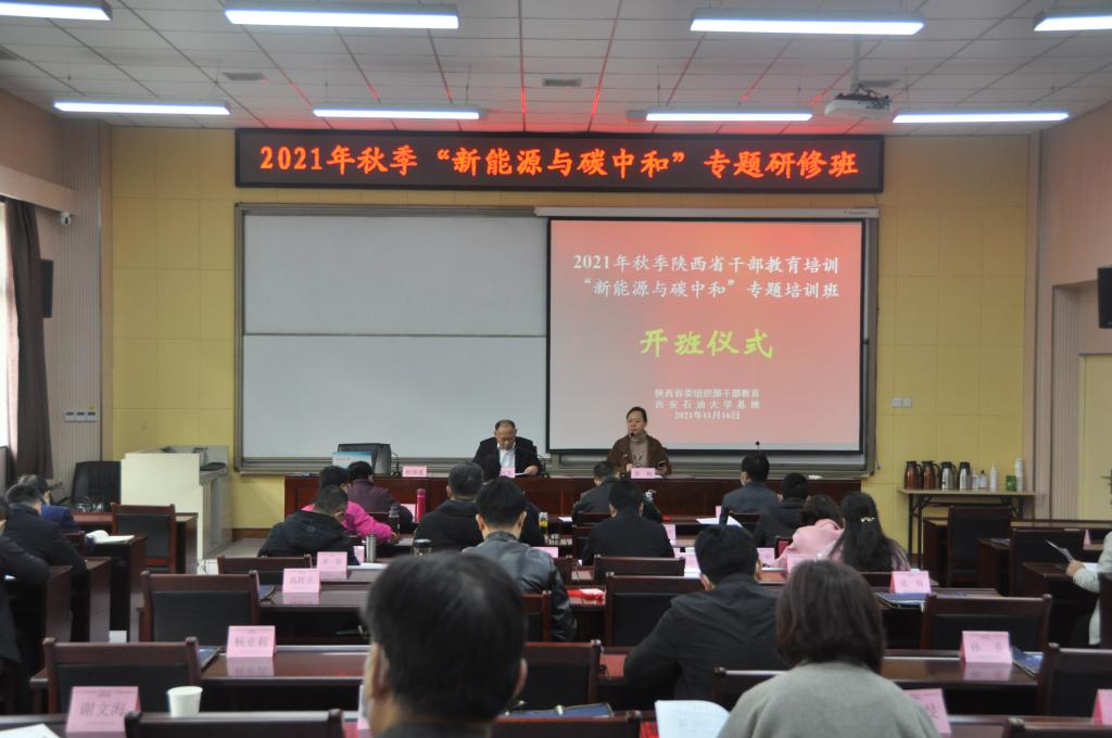 11月16日上午,由省委组织部主办、beat365干训基地承办的2021年秋季陕西省干部教育培训“新能源与碳中和”专题研修班在beat365顺利开班,来自省直机关单位、县(市、区)政府的60余名干部参加了开班仪式,继续教育学院副院长吴民生出席开班仪式并致欢迎辞。