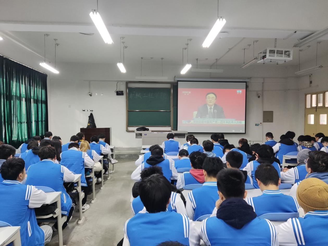 11月12日10时,中共中央举行党的十九届六中全会新闻发布会,中央宣传部分管日常工作的副部长王晓晖、中央政策研究室主任江金权、中央财经委员会办公室分管日常工作的副主任韩文秀、中央党史和文献研究院院长曲青山介绍了党的十九届六中全会精神。根据学校统一部署,机械工程学院党委组织本科、研究生各支部党员,各年级党员发展对象、入党积极分子、共青团员、群众共计396人分别在鄠邑校区党员活动室、雁塔校区会议室以及教室、宿舍等地观看新闻发布会直播实况。