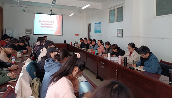 为进一步加强学风建设,持续推行“研究生导师+本科生+硕士生”三位一体“融合”育人育才创新模式,提升本科生人才培养质量,11月10日下午16:00,材料科学与工程学院新材料系在鄠邑校区机械材料楼204会议室召开师生座谈会。学生管理办公室主任马武军、辅导员马黎、新材料系全体教师、来自大三和大四的优秀学子及2020级新能源材料与器件专业的全体同学参与了本次学习交流座谈会。会议由新材料系主任肖美霞主持。