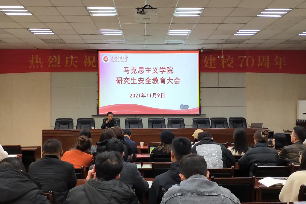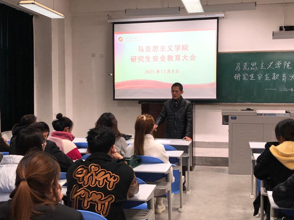为贯彻落实学校安全工作会议精神,加强对研究生的日常管理,提高学生安全防范意识,引导学生树立规矩意识,营造健康、稳定的校园氛围,马克思主义学院分别于11月8日在鄠邑校区,11月9日在雁塔校区召开了研究生安全教育大会。