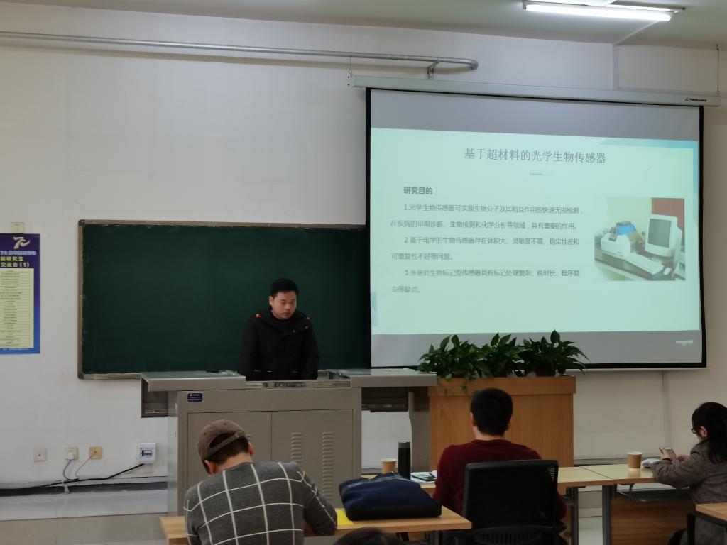 接着,43位研究生分别就“不同元素掺杂氧化锌的性质”、“基于卷积神经网络的图像识别”、“气体传感相关知识”、“基于光纤的油气管线泄漏”、“黑磷烯掺杂的第一性原理研究”、“全变分图像去噪”等43个学术专题进行了交流分享。在为期一整天的学术交流活动中,马成举副教授、温俊青副教授认真聆听、详细记录、一一点评,体现了导师严谨治学的学术态度。43位研究生同学经过两周的认真准备,在讲台上展现出了良好的学术水平和较好的时间管理能力。