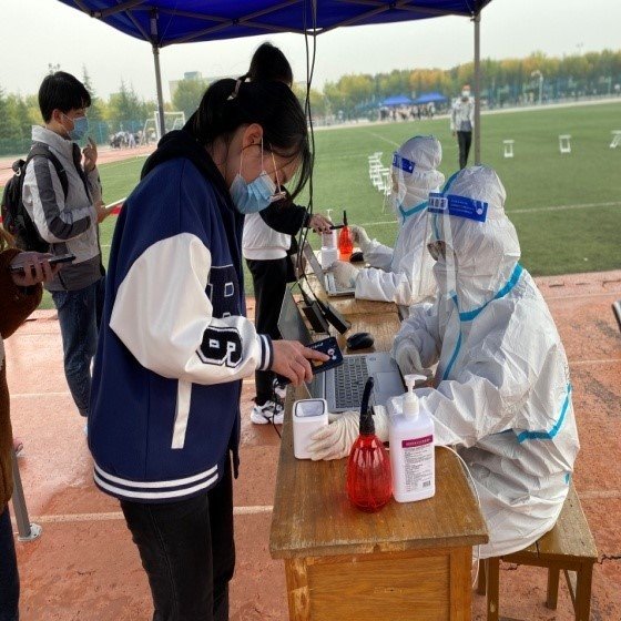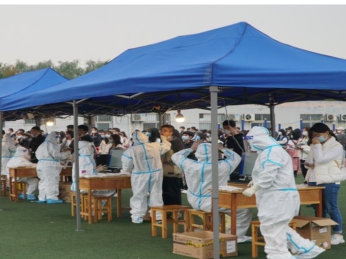 三是闻令而动,全力投入两校区全员和重点人群的核酸采集等有关工作。在核酸检测工作中,校医院承担着雁塔校区全员核酸检测的采样、鄠邑校区全员核酸检测的身份核验及部分特殊人群的采样工作等任务。每次在接到关于开展全员核酸检测的紧急通知后,校医院与时间赛跑,从布置场地、准备设备物资、组建核酸检测采样队,做到了反应迅速,及时有序到位。采集实施过程中,校医院医护人员严格落实个人防护措施,采样操作规范,确保了样本质量。截至目前,校医院共派出核酸采样医务人员200余人次,累计采集师生样本近50000多人份,重点人群500余人份。