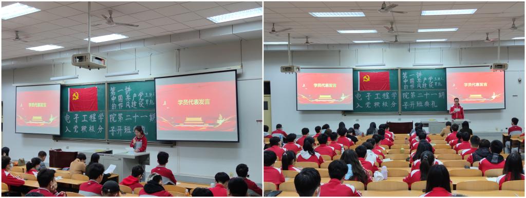 10月26日晚,电子工程学院第二十一期入党积极分子培训班开班典礼暨党课第一讲在鄠邑校区A239教室举行,校党委巡察办公室主任覃彪、电子工程学院党委副书记毕轶慧、全体辅导员以及学院本科生、研究生共98人参加,本次活动由院团委书记、学生管理办公室主任钱宇航主持。