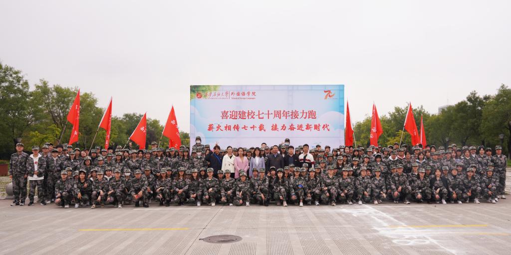 10月12日校庆日,由外国语学院主办、外国语学院团委和学生会承办的 “薪火相传七十载,接力奋进新时代”喜迎建校70周年接力跑活动在鄠邑校区开跑。学院党委书记田虹霞、学生工作办公室全体成员和2021级全体本科生参加活动。活动由学院党委副书记王业青主持。