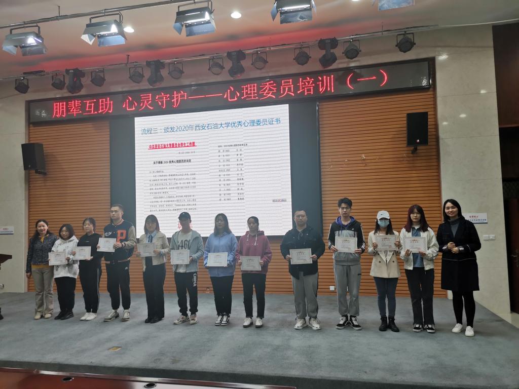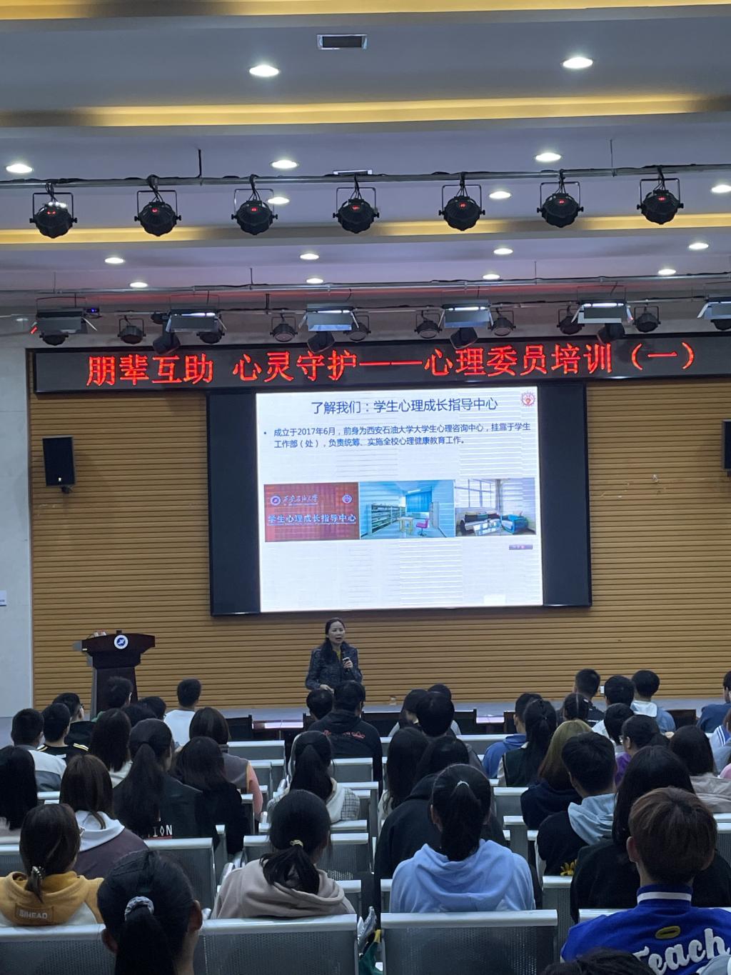 10月9日晚,2021年新任心理委员培训在鄠邑校区经管人文楼118举行,培训由学生心理成长指导中心专职教师赵晶主持,学生心理成长指导中心主任肖琼做了题为“朋辈互助、心灵守护”工作讲座。2021级全体本科生、研究生心理委员,其他年级新任心理委员、西安石油大学心理委员联合协会主席团成员、2020年全校优秀心理委员二百余人参加了会议。