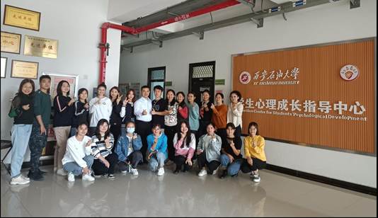 本次活动由互动交流、情绪宣泄、音乐放松、沙盘游戏、脑波治疗体验五部分组成。在心理成长指导中心老师的带领下,同学们依次参观了体验导室、心理咨询室、宣泄室、音乐放松室、心理沙盘室等,肖琼教授在参观过程中依次向同学们介绍各个功能室的定位、效能和适用性,并宣传了“油缘心理”的理念-“如石油之动力,惜相遇之机缘,助心理共成长”。为让同学们对心理咨询的流程和学生心理成长指导中心的工作有进一步的了解并加深感受,同学们分别亲身体验了宣泄室、音乐放松室、心理沙盘室等。