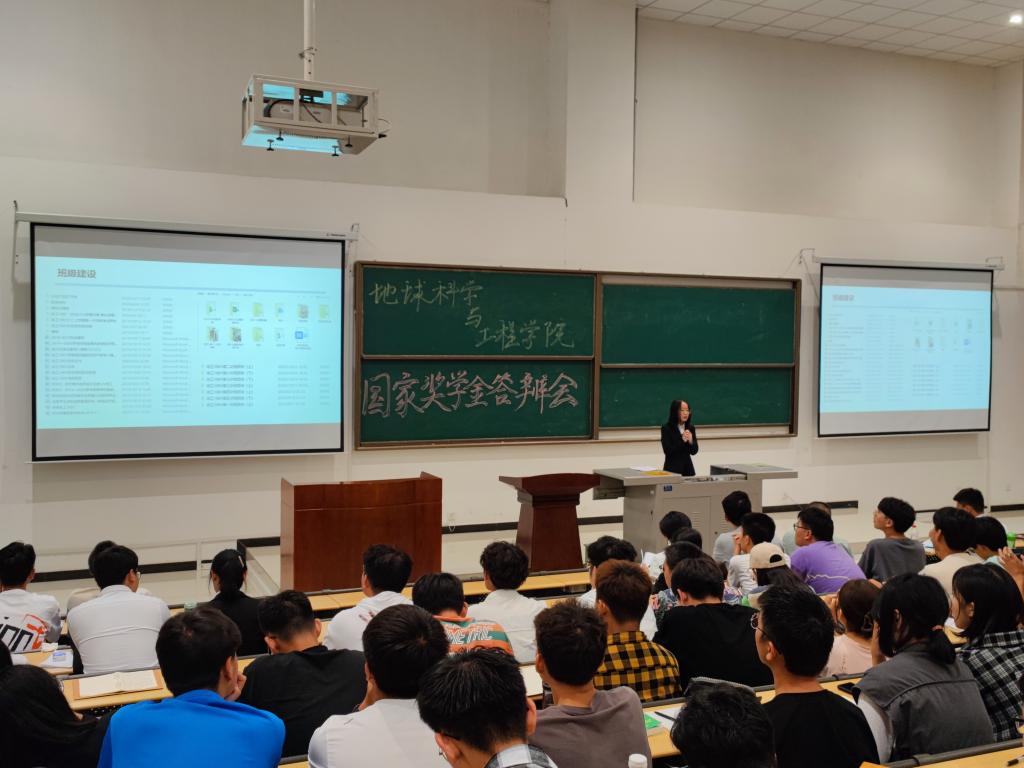 2021年9月16日晚,地球科学与工程学院在鄠邑校区开物楼115教室,举办了地球科学与工程学院国家奖学金评审答辩会,五名品学兼优的国奖候选人参与此次答辩。学院邀请了校团委副书记孙浩哲老师担任答辩评委,学院党委副书记王莹老师,地科院全体辅导员及各年级学生代表参与了本次答辩会。